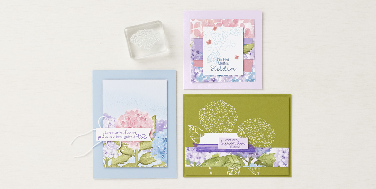 Our homage to this nostalgic, floral favorite includes the Hydrangea Haven Stamp Set with coordinating Hydrangea Dies (buy them in a bundle for savings!), Hydrangea Hill Designer Series Paper, Hydrangea Hill Mercury Glass Designer Acetate, Gorgeous Grape 3/8" (1 cm) Sheer Ribbon, and finally—luminous, adhesive-backed Pastel Pearls to add a touch of elegance to any project. Coordinating colors reflect traditional hydrangea colors and include Gorgeous Grape, Highland Heather, and Rococo Rose. |