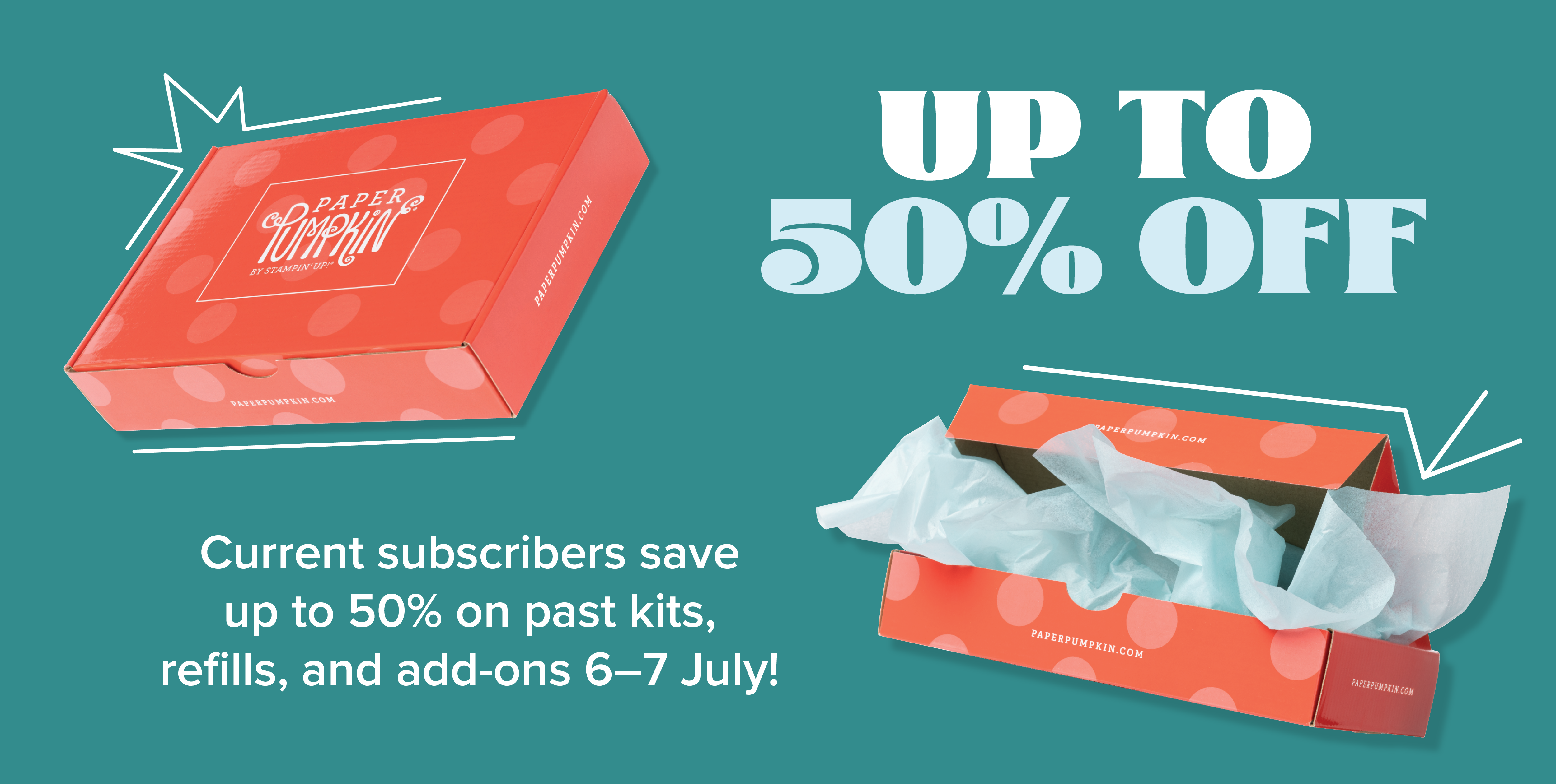We’ve got some exciting news! Starting 6–7 July, current Paper Pumpkin subscribers can get up to 50% off on past kits, refills, and add-ons!